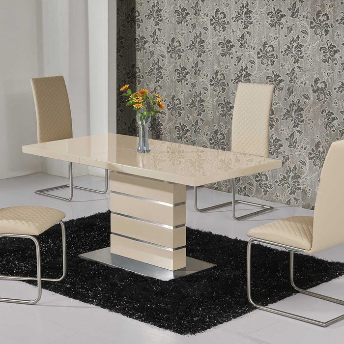 Dining sets, extendable dining tables. High gloss dining table sets | oak furniture superstore It's made with a circular engineered wood surface that's set on a cast aluminum pedestal base for some high contrast materials. 1 x 14 hidden leaf high gloss top in white high gloss and chrome appliancesconnection $ 642.99 The global furniture was founded in 1999 producing unique varieties of different home and office based furniture.